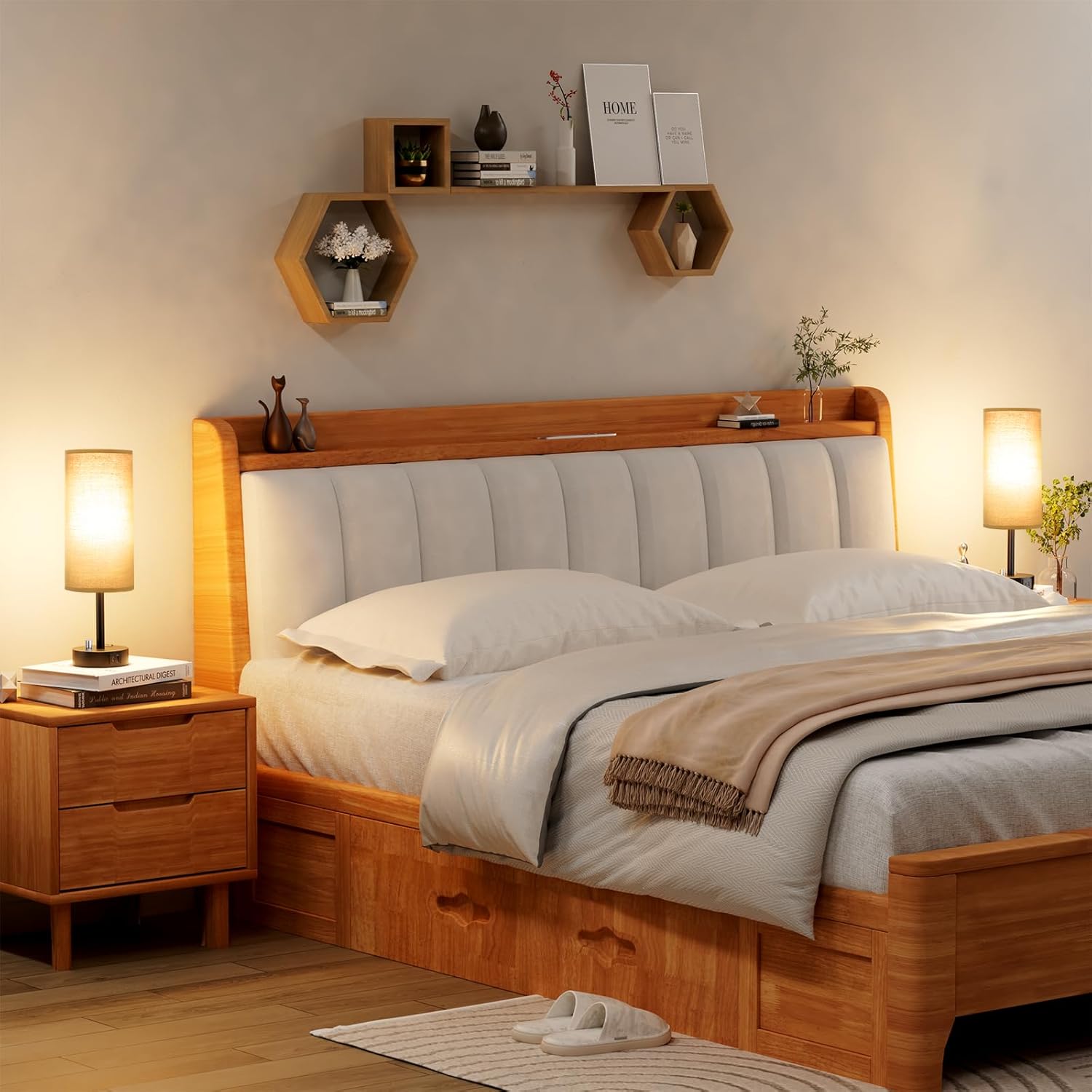 • Plug and Play Table Lamp - Package included a non-flicker Free E26 led light bulb, a install-free flaxen fabric shade, a stable lamp body and a touch control metal base with wooden finishing. Put all together for a minimalism lamp is really perfect to decorate anywhere of your house. An ideal USB nightstand lamp for bedroom, guest room, living room, study room, kids room for girls and boys, office room, desk, etc. at the same time.