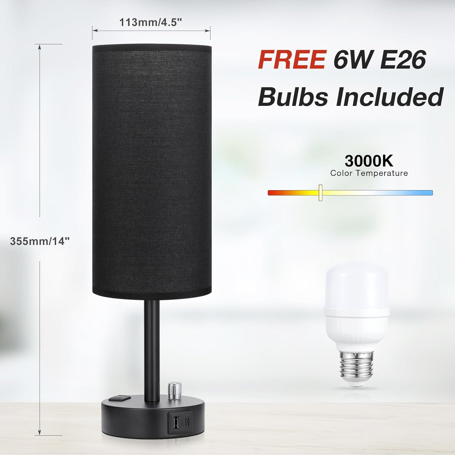 • LED Light Bulb Included - For saving you more time on finding a correct bulb, we particularly pair with an non-flicker E26 LED light bulb. Unlike other dazzling side table light lamp, our bedside lamp with dual usb port and outlet provides no-flickering lights, to protect you and your kids and family's eyes from eye strain, or eyesight damages. You'll love how easy it is to get to your device when you need it. Gone are the days of running to the nearest power outlet.