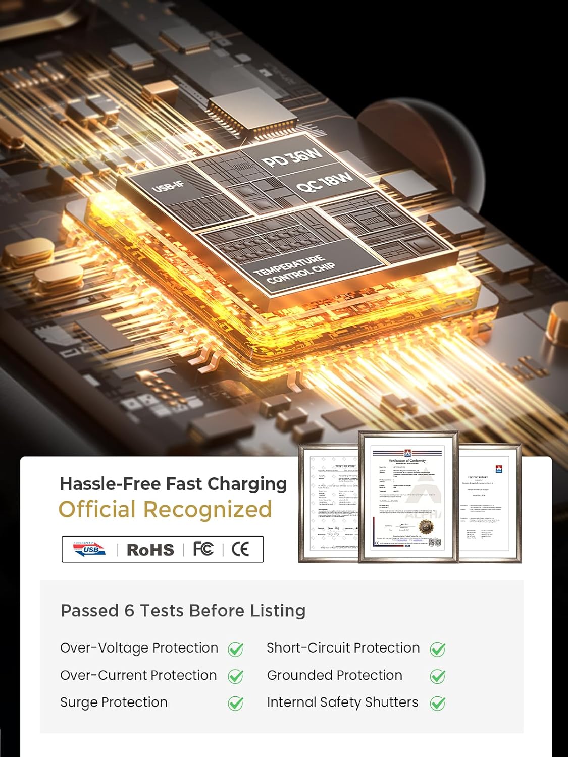 • ⚡ SUPER FAST 36W PD CHARGING: Super fast car charger USB C car adapter with all-new upgrade PD 36W can charge iPhone 15 Pro Max Plus 14/13/12 series up to 88% and iPad up to 60% at 35mins. And it also supports SAMSUNG PPS super fast charging for S23/22/21/20.