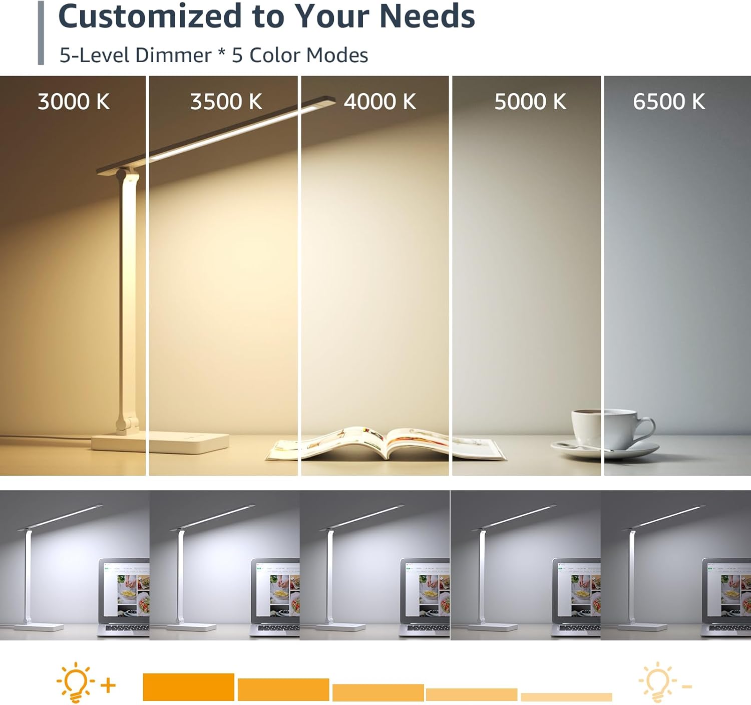 • Multiple Lighting Choices. This led desktop lamp offers 5 lighting modes that can each be paired with one of the 5 brightness levels for a total of 25 different light settings.