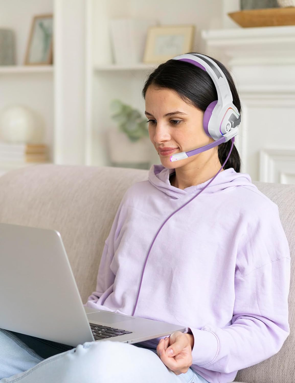 • 【HUMANIZED DESIGN】Lightweight design, breathable protein over-ear pads, and flexible headband with thickening pads, provide a long & comfortable gaming session, suitable for different head shapes.